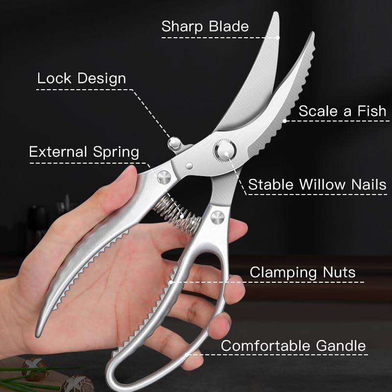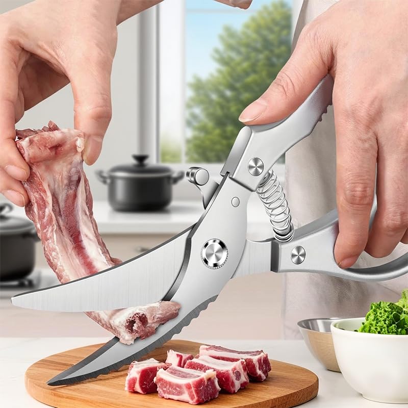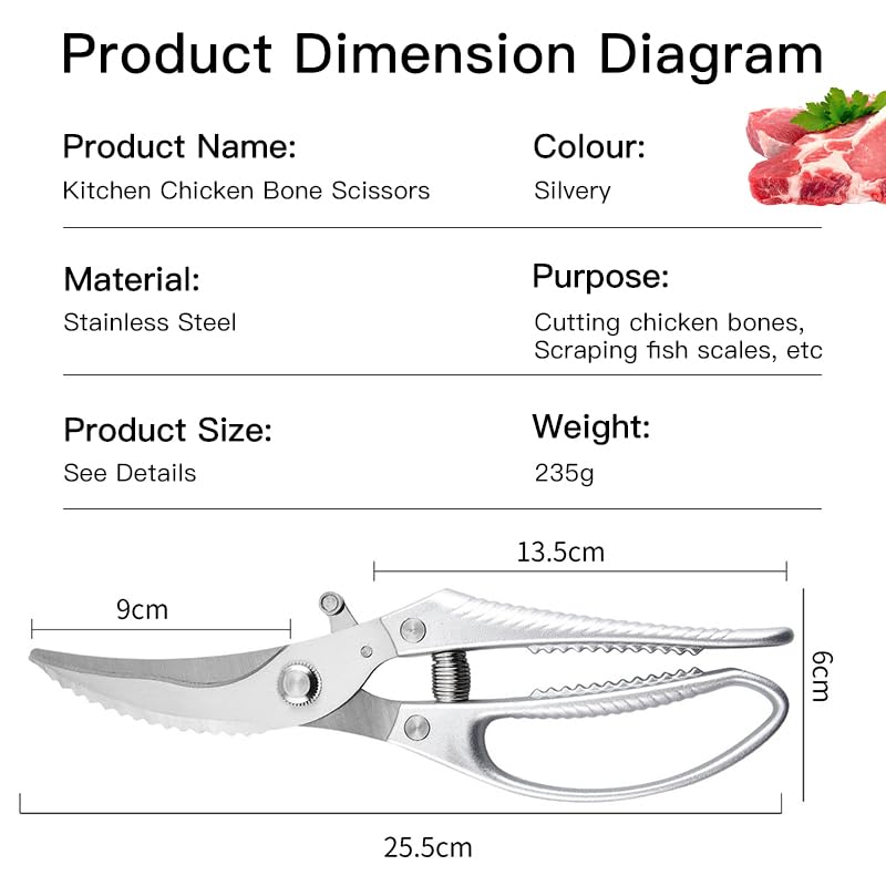 BOPOTI 10″Home multifunctional scissors for chicken, duck, goose with rebound stainless steel kitchen scissors for bone cutting