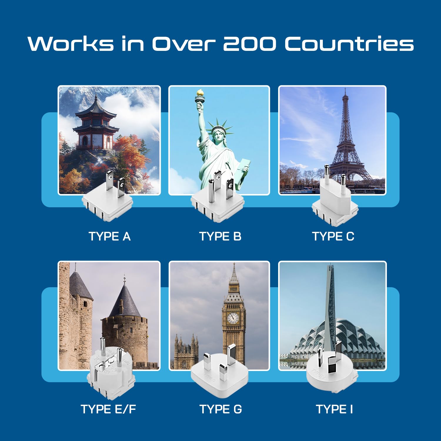- International Power Adapter:Equipped with 2 USA outlets, 1x USB-A (3A), 1x USB-C and 1x PD 35W USB-C and USB-C cable-Perfect for travel – use with cell phones, laptops & other devices anywhere in the world – Few Exceptions Listed below.
