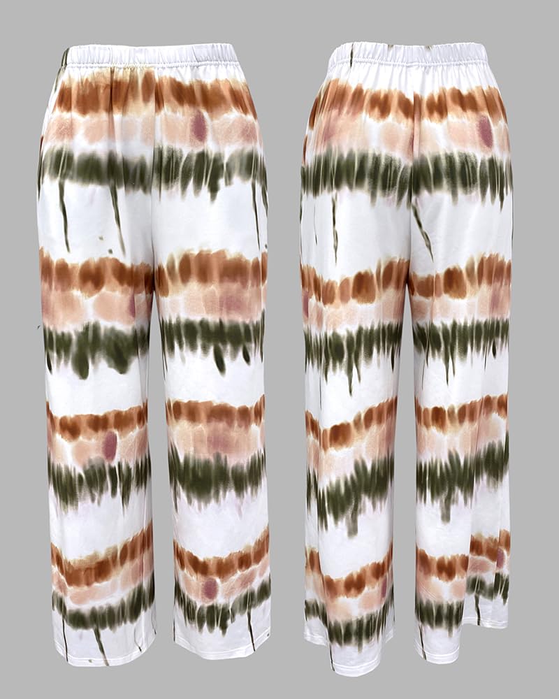 CHICME Womens Pajamas Sets 2 Piece Long Sleeve Lounge Set Printed Loose Pants Pj Sets Loungewear Tracksuits with Pockets Ombre Green-L