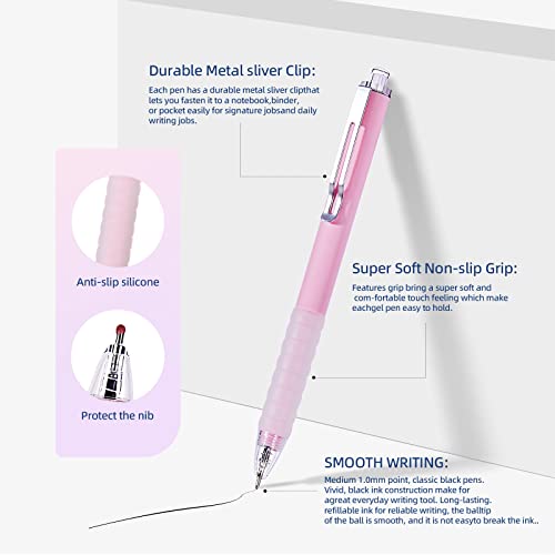 FULLPAD Black Ballpoint Pens, Retractable Medium Point 1.0mm Office Supplies Pen with Super Soft Grip & Metal Gold Clip, Smooth Writing Black Ink Journaling Pens, Gift Pen Set