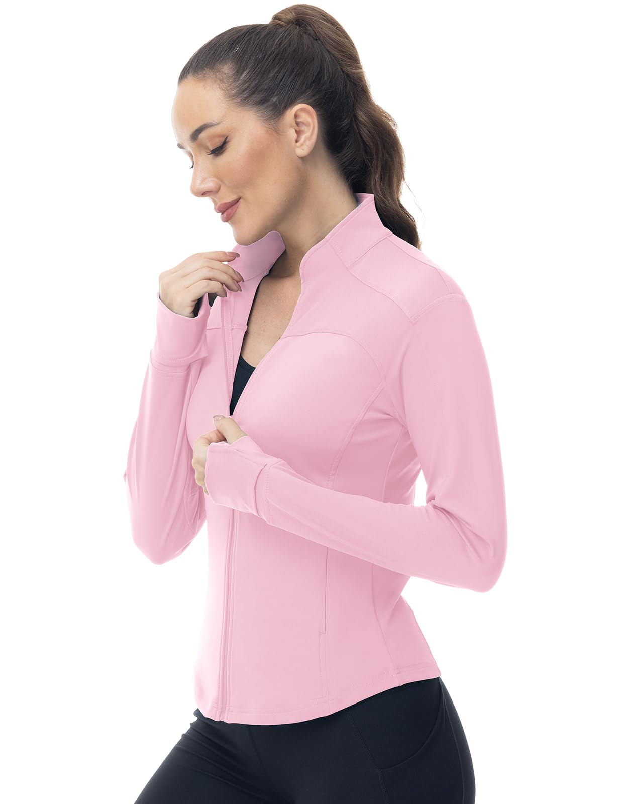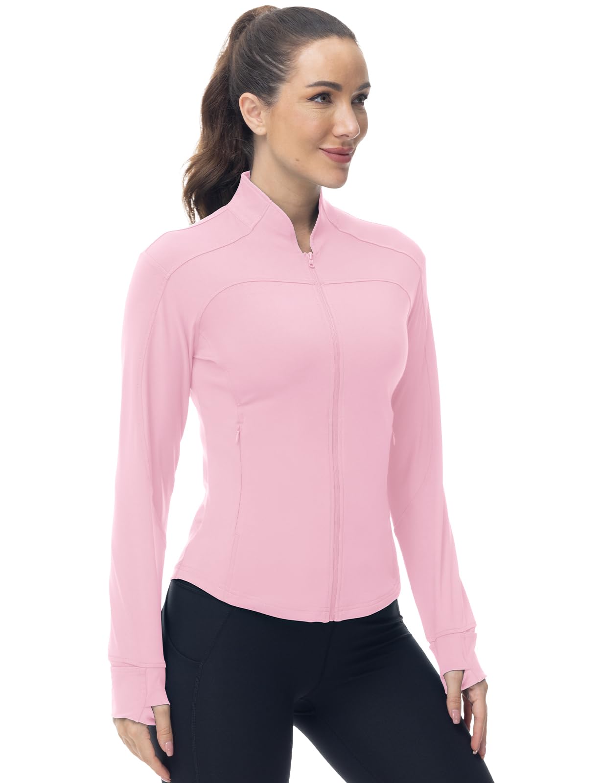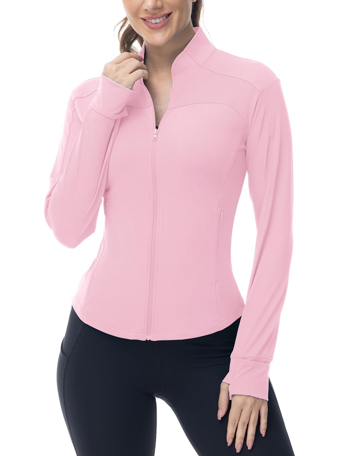Gopune Women’s Workout Athletic Jacket Lightweight Zip Up Yoga Slim Fit Tops with Pockets Pink M