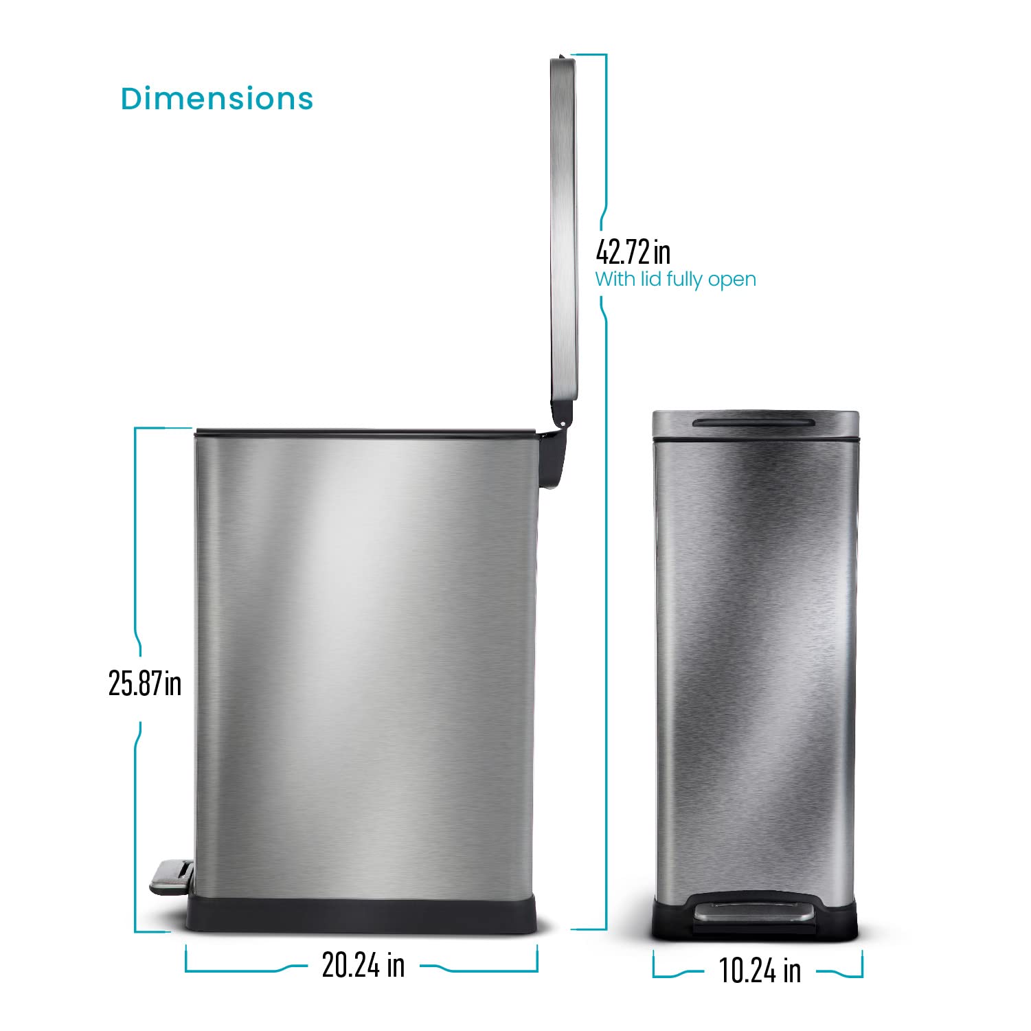 - Hands-Free Foot Pedal: Step pedal allows for clean, hygienic lid operation when your hands are full or messy