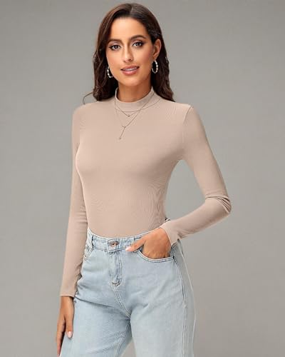 - Easy to Match: the women’s mock neck shirt goes with a wide variety of outfits for a concise look, that are easy to pair with shorts, jeans, trousers, skirts, high heels, boots, etc.; Nice for laying or just wearing alone