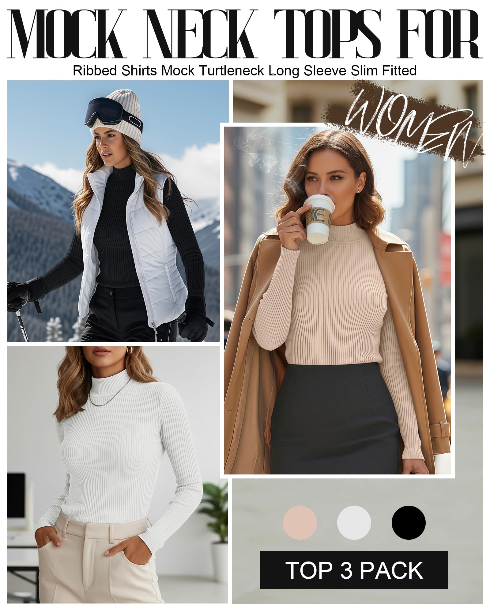 - Package Included: you will get 3 pack women’s mock turtleneck top in solid colors, making you stand out from the crowd and can be styled in a variety of different ways; This blouse top will have you on trend