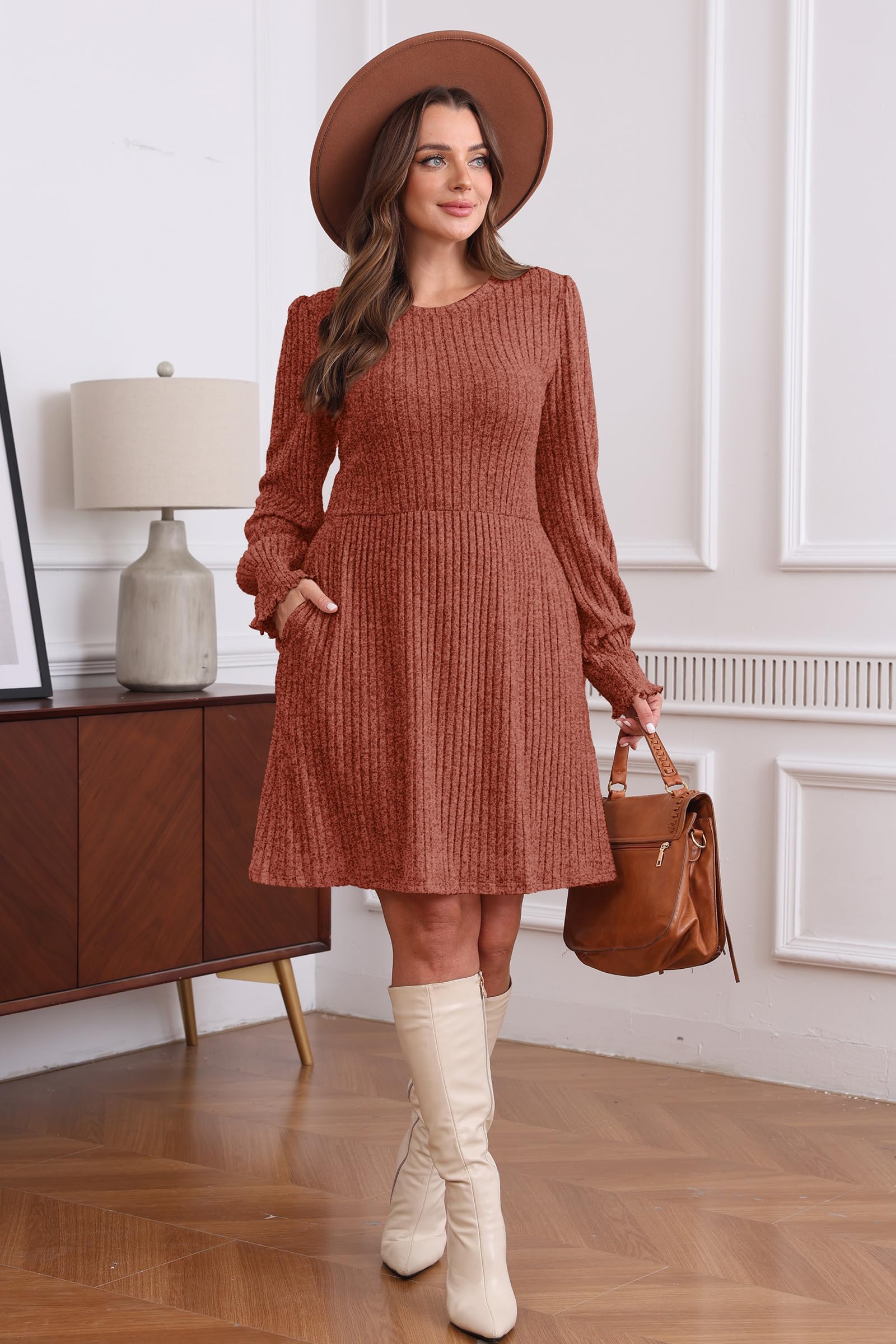 SAMPEE Fall Dresses for Women 2025 Fashion Long Sleeve Sweater Corduroy Dress Tunic Winter Outfits Clothes Caramel S