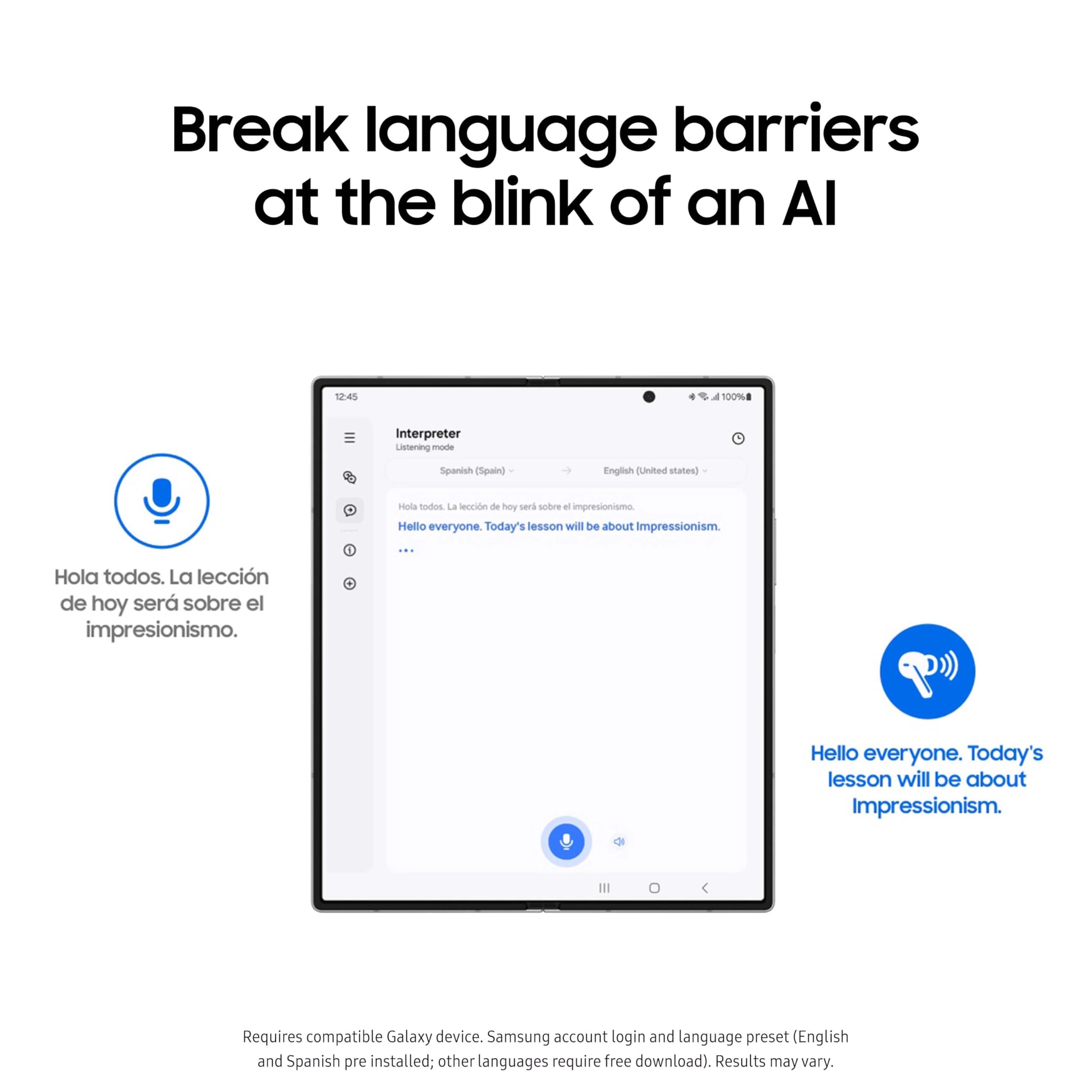 • THEY SAY “HOLA,” YOU HEAR “HELLO: Hear translations through your Galaxy Buds during face-to-face conversations using Real-Time Interpreter with Galaxy AI³