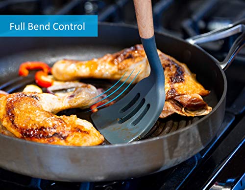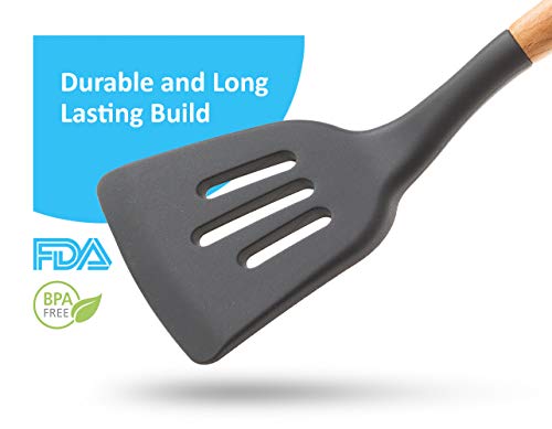 With these utensils you can mix, stir, serve and flip any kind of food for perfect results. High Quality The cooking utensils are crafted to perfection with the best quality materials for easy use and healthy cooking. The kitchen tools are made with food grade silicone and natural wood, so they can be eco-friendly and safe for you and your family.
