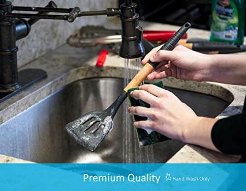 • Stylish Design : These black cooking utensils have a modern design that will match every kitchen decoration and style. The silicone kitchen tools come in elegant black and natural wood so they can be used for every style, from rustic and romantic to minimalist & modern.