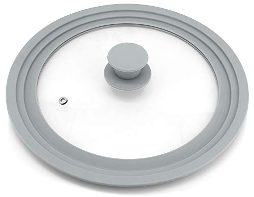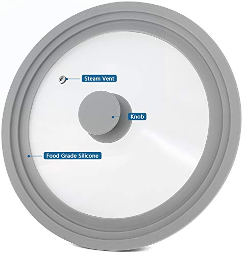 TOPULORS Universal Lid for Pots, Pans and Skillets, Tempered Glass with Silicone Rim Fits All 9 to 11 Inch Diameter Cookware, Frying Pan Cover, Replacement Lid, Dishwasher Safe, Grey
