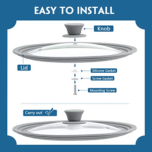 - ◆MULTIPURPOSE SIZE: The tempered glass lid fits perfectly for a pot of 9.4 in(24cm), 10 in(26cm), and 11 in(28cm) diameters, also fits for pot or pan from 8.7 inches to 11.4 inches diameters. The maximum diameter of our universal cover is 11.6 in, so you can choose to fit your need. Works with fry pans, pots, saucepans, skillets, stockpots, woks, round bowls, cast iron pans, and practically any other style of cookware.