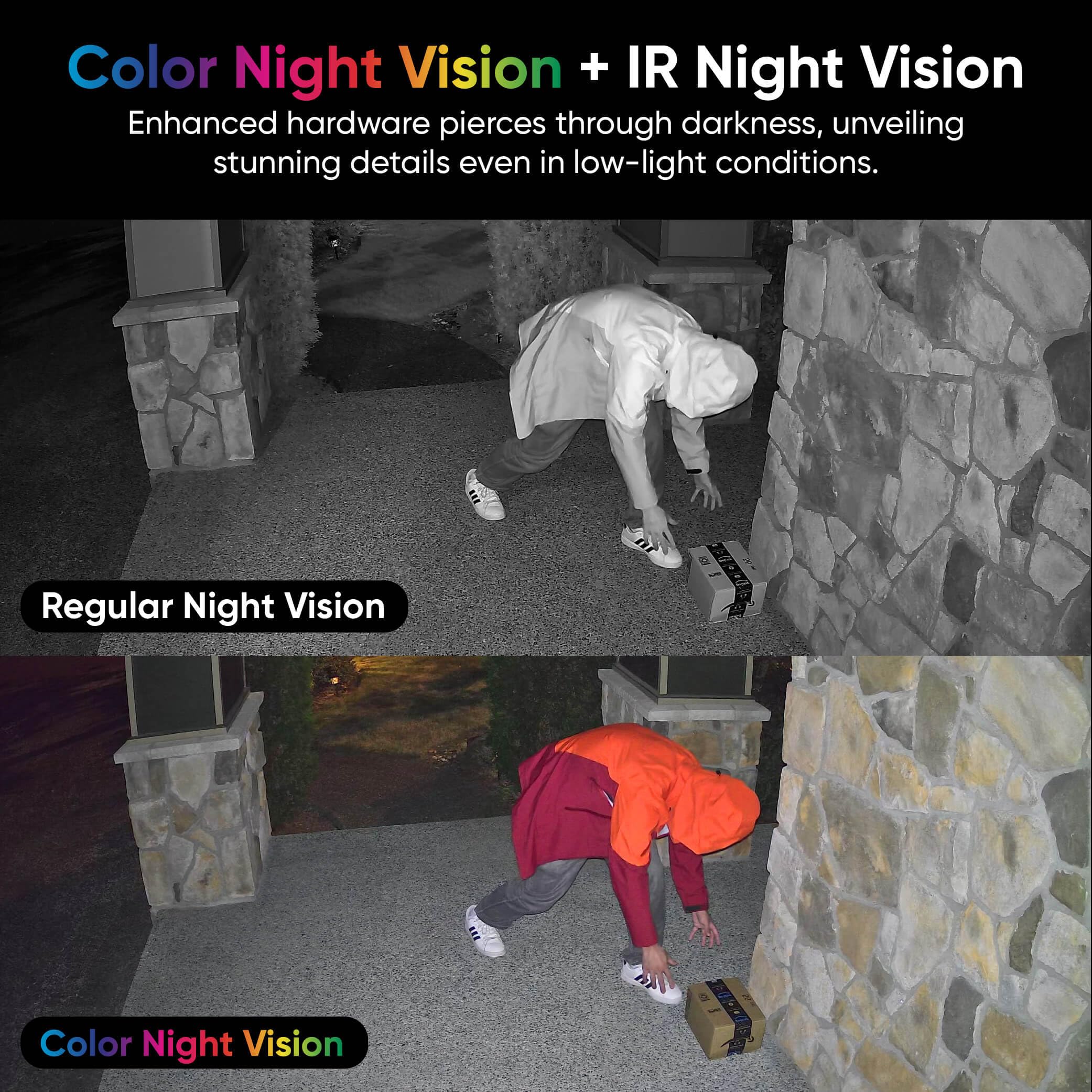 - More Safety at Night with Color Night Vision + Spotlight Siren – Enhanced IR and spotlight illumination deliver full-color nighttime footage, while the built-in siren adds extra security as a proactive outdoor security camera.