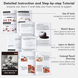 124 PCS Drawing Kit, Shuttle Art Professional Drawing Supplies with Sketch, Charcoal, Colored, Graphite, Pastel Pencils & Sticks, Complete Drawing Tools and Paper Pads in Zipper Case for Artists& Kids