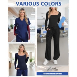 Neer 3 Pack Womens Underscrub Shirts Long Sleeve Square Neck Tops Scrub Tee Comfort Basic Layering Clothes for Nurse(Black, Navy Blue, Wine Red,Large)
